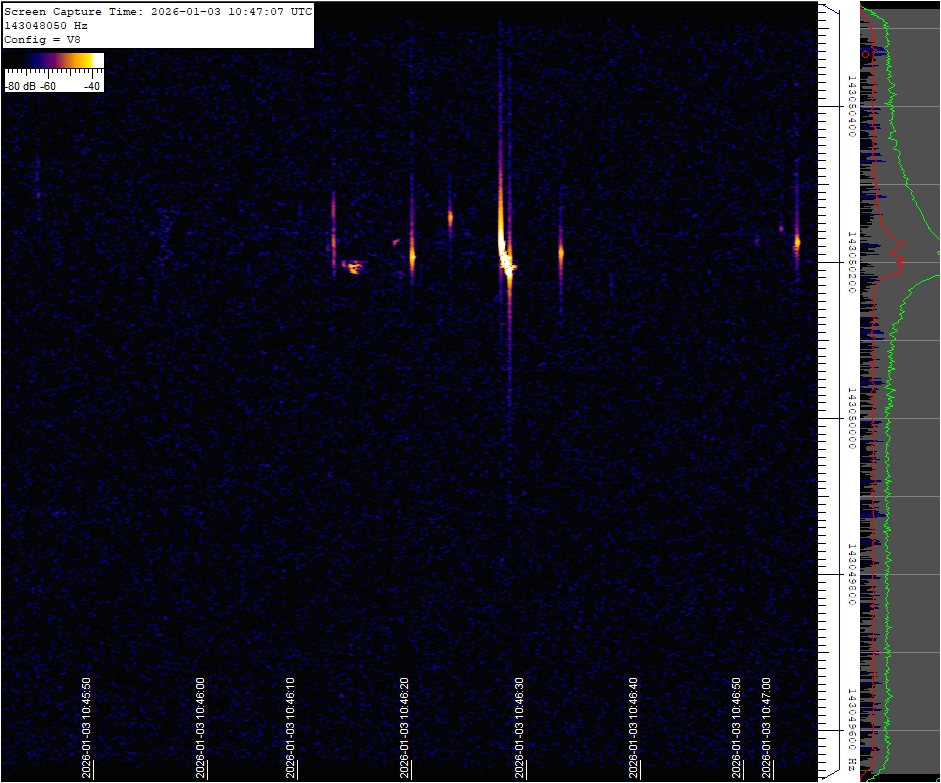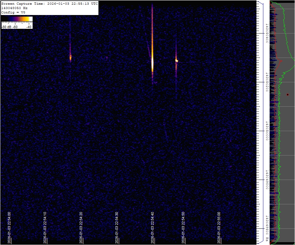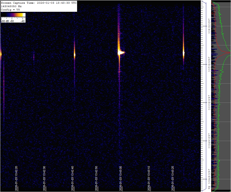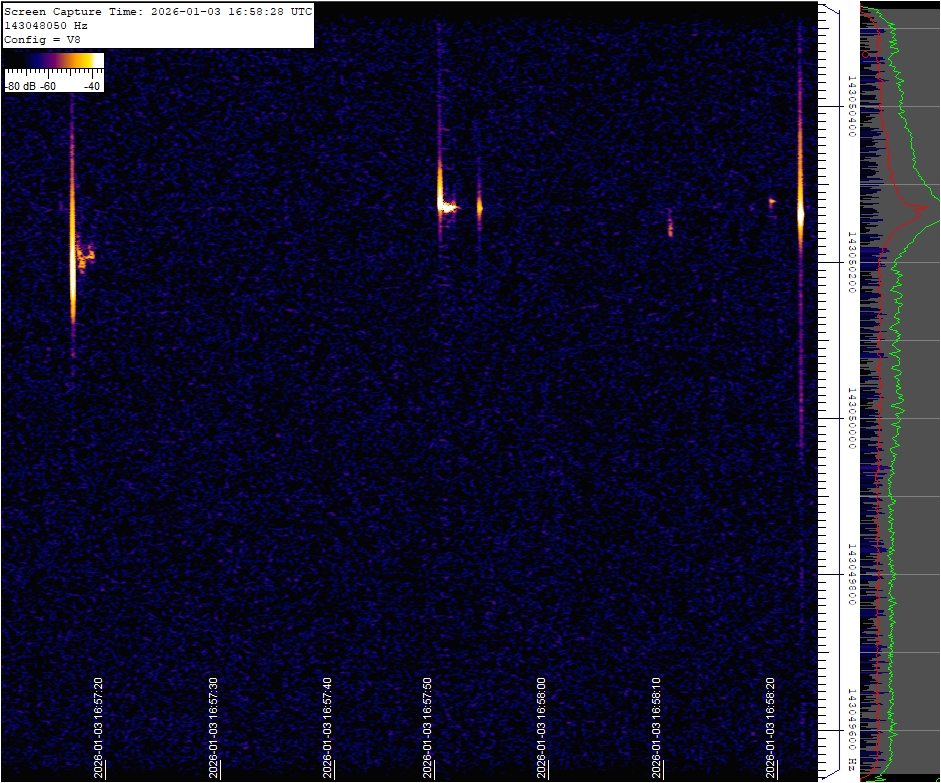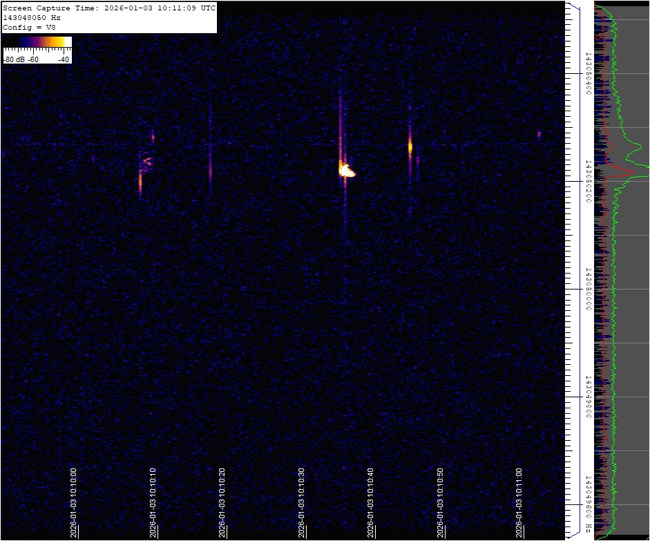 This observatory uses a radio wave reception technique based on the reflection of distant radio signals off the ionized trail left by meteoroids aka forward scatter. Specifically, it utilizes as a source the signal from a French space radar located near Dijon. The receiver's signal is continuously monitored 24/7, and if a positive detection occurs, the spectrum image of the signal is saved and later reviewed by a binary classification model and uploaded to this website. Link to technical details and setup